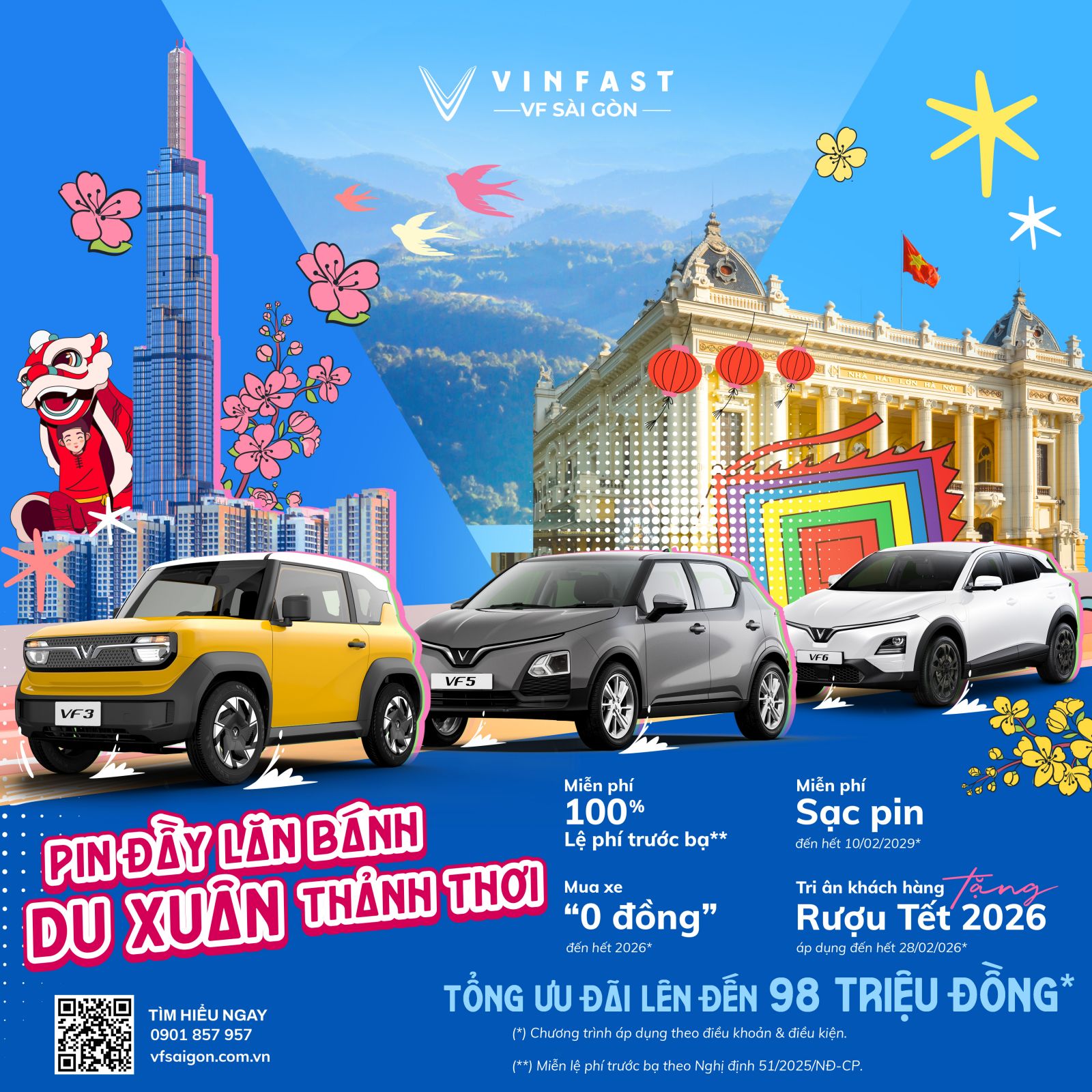 Năm mới là thời điểm lý tưởng để khởi đầu những hành trình mới. Với chính sách sạc 0 đồng đến hết 10/02/2029* cùng mạng lưới hơn 150.000 cổng sạc phủ khắp Việt Nam, khách hàng hoàn toàn yên tâm vi vu du xuân mà không phải bận tâm về chi phí năng lượng.