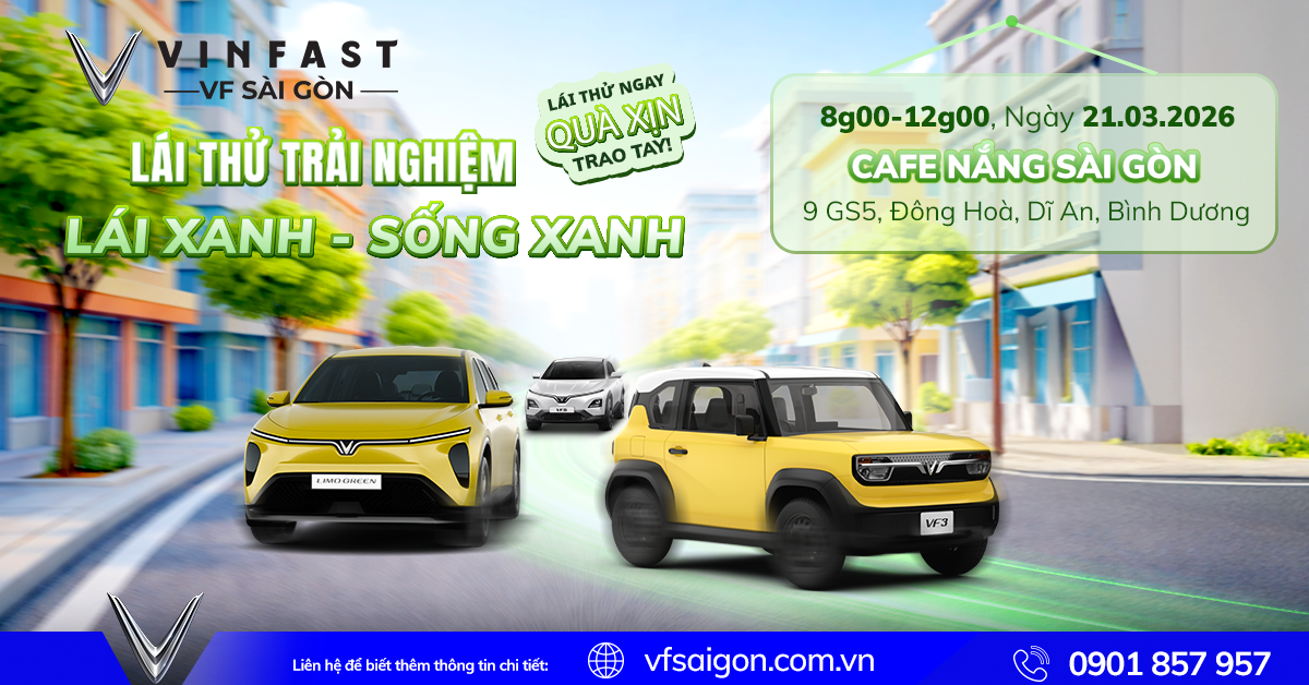 Sự kiện lái thử VinFast VF Sài Gòn ngày 21/03/2026 là cơ hội tuyệt vời để bạn trải nghiệm thực tế xe điện, nhận ưu đãi lớn và bắt đầu hành trình sống xanh. Đừng bỏ lỡ dịp đặc biệt này để nâng tầm trải nghiệm di chuyển của bạn.